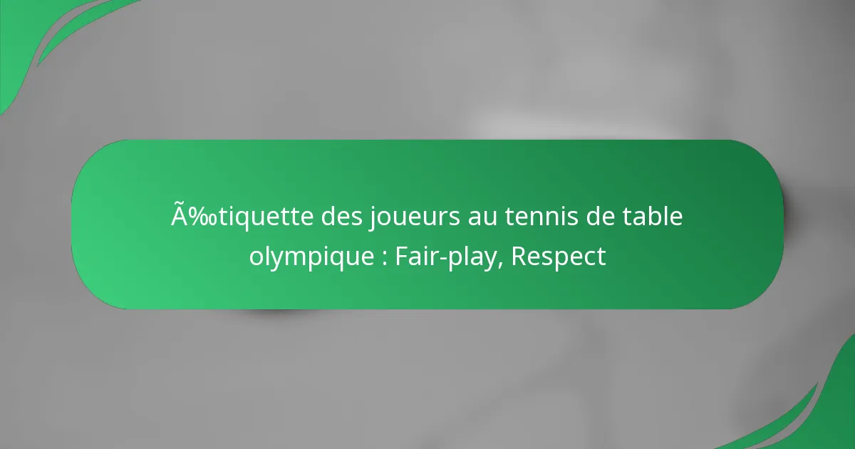 Les disqualifications de joueurs en tennis de table olympique peuvent résulter de diverses infractions, telles que des violations de règles, une conduite antisportive, le dopage, la manipulation de matchs et des préoccupations concernant l’éligibilité. Comprendre les motifs de disqualification est crucial pour maintenir l’intégrité du sport. Les procédures pour traiter ces disqualifications impliquent une approche systématique de la part des officiels de match, garantissant le fair-play et le respect des règlements, tout en permettant également la communication et d’éventuels appels.